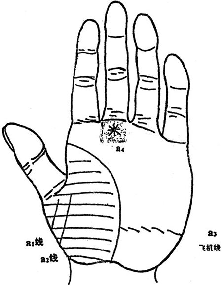 ② 图a3,所示是易有坐飞机旅行机会的飞机线,同时有坐飞机的机会才会有出国的机遇,所以此线又是出国线的基础线。